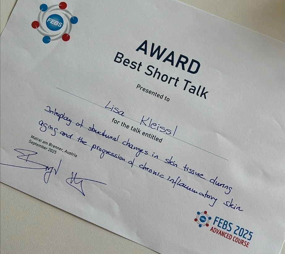 2025-09-10 - Lisa won the best short talk award at the FEBS Advanced Course on Immunology, metabolism and ageing