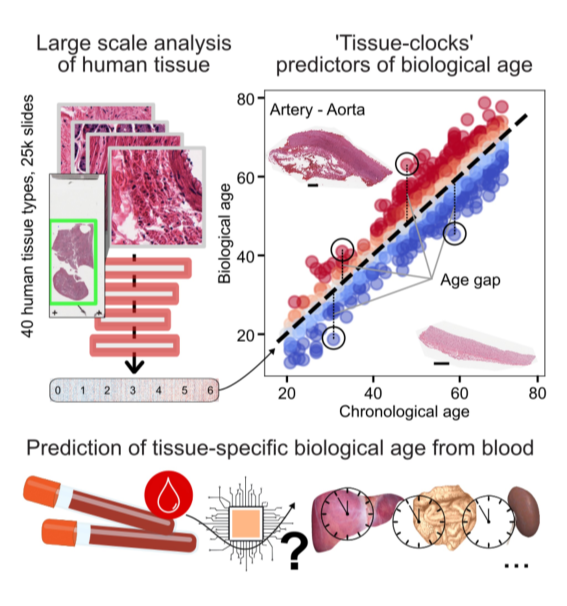 Aging is accompanied by gradual but profound changes in tissue structure and function, which contribute to increased vulnerability to chronic diseases. Our research investigates the molecular and cellular drivers of these changes, emphasizing their manifestation at the tissue and organ levels. We develop models to characterize these age-associated transformations, leveraging human tissue datasets.