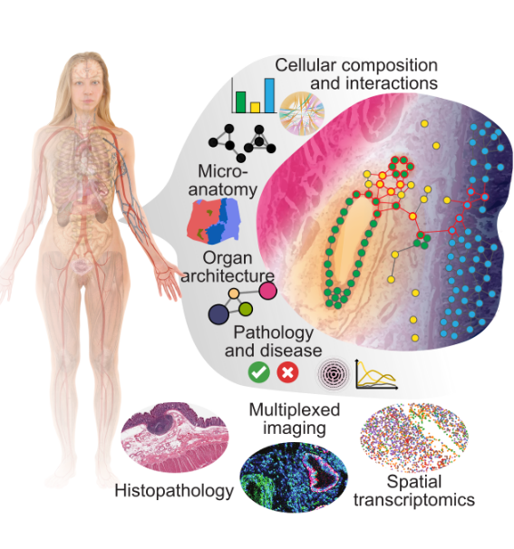Our lab explores the spatial organization of biological systems, bridging molecular mechanisms with tissue and organ-level structures. We aim to understand how cells and their microenvironments interact across different anatomical scales, from individual cells to whole organs. This multi-scale approach is pivotal in revealing how structural changes, such as alterations in microanatomy or cellular interactions, correlate with physiological and pathological states during aging and disease onset. By leveraging cutting-edge spatial transcriptomics, multiplexed imaging, and histopathological datasets, we uncover previously unappreciated patterns of tissue architecture and its perturbations.